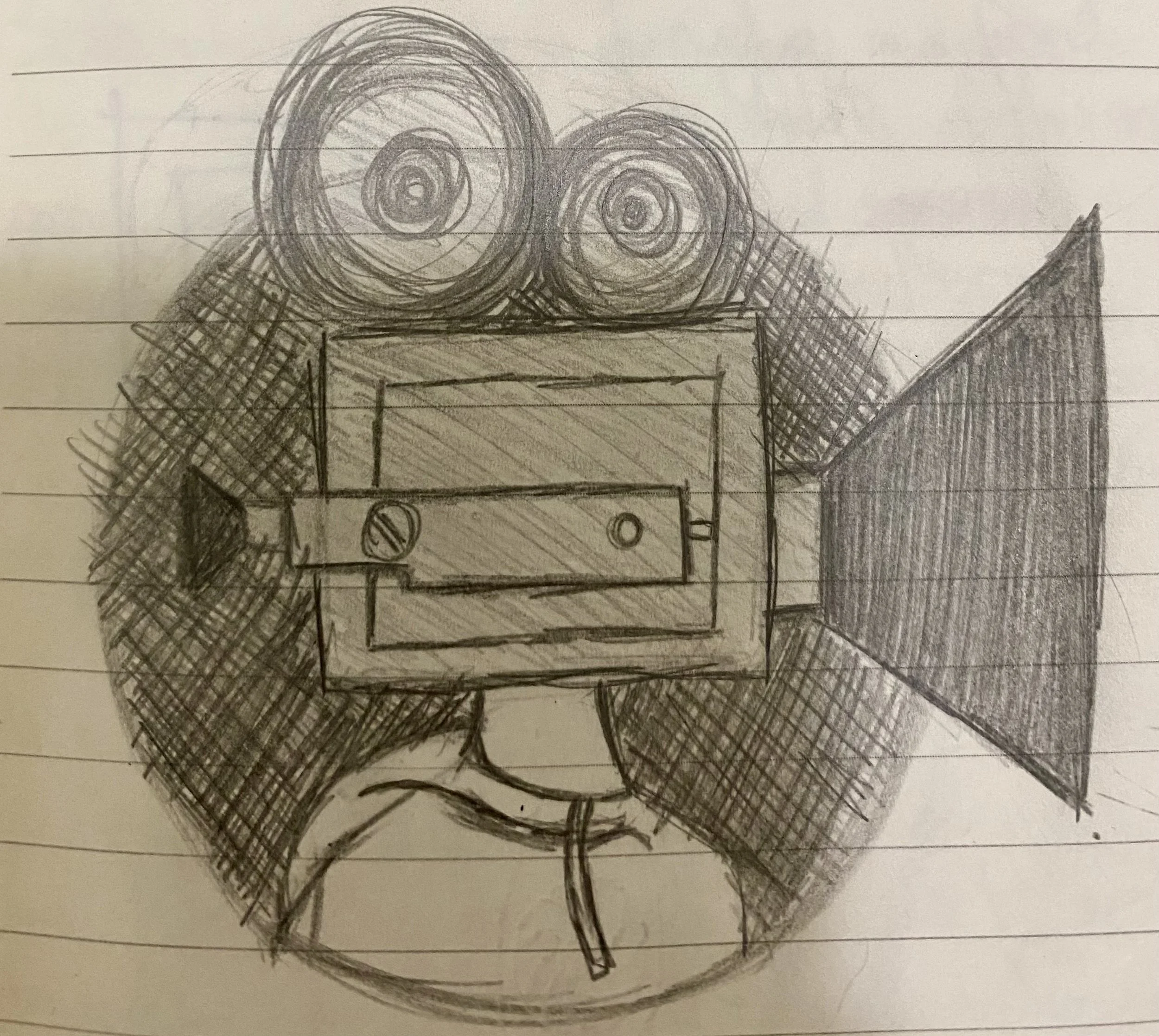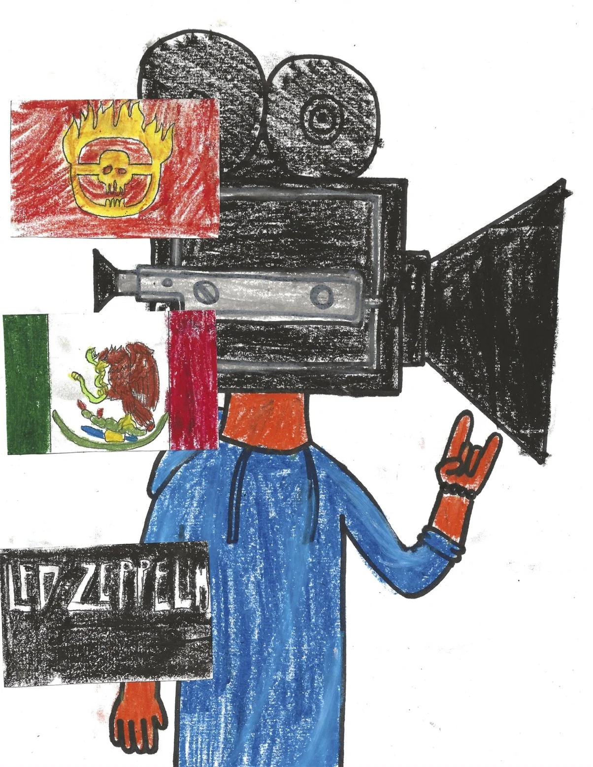 CameraHead is my mascot. It is a character that is a representation of myself and what I love to do, which is make films. The character started from an art class in community college where our final project was creating a drawing or painting that represents us. I had three ideas in my head, “I am from Mexico, I love rock n’ roll music, and I love filmmaking.” These are things that I love and make me who I am. I loved creating this character and I thought from that project that I would not use him again. Two years later, I had the idea of what would my logo for my projects be. I remembered this drawing and I decided to come back to it. I settled on the name CameraHead and my logo has finally been found. CameraHead will stick around for a long, long time.